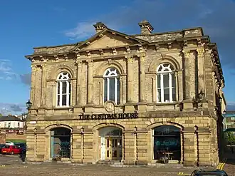 The Customs House is an arts and entertainment venue in the Mill Dam Conservation Area of South Shields, South Tyneside. It opened in July 1864 as a custom house, built to facilitate the import and export of goods at Shields Harbour. Before 1865, both North Shields and South Shields operated as a single customs port following their separation from the Newcastle Customs House in 1848. South Shields was granted customs independence from North Shields in 1865, in part due to the construction of the new custom house building in the town. An extension was added to the building in 1878 to house the Marine Board offices. In the 1970s, the decline of the local shipping industry meant the custom house became derelict. In 1992, the Tyne and Wear Development Corporation led a restoration effort and extension of the building, transforming it into an arts centre.
