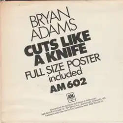 "Cuts Like a Knife" was released in 1983, peaking at number 15 on the Billboard Hot 100[4] and number 6 on the Hot Rock Tracks chart. The song reached number 12 on the Canadian singles chart and remained in the top twenty for seven weeks. "Cuts Like a Knife" was Adams' highest charting single to date in Canada while the previous single "Straight from the Heart" was the higher charting song on the US Hot 100 peaking at number 10.[5] "Cuts Like a Knife" won the Procan Award (Performing Rights Organization of Canada) for Canadian radio airplay in 1983 and was nominated for a Juno Award for Single of the Year in 1984.[3]