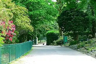 Poet Dylan Thomas grew up near the park at 5 Cwmdonkin Drive. This semi-detached house, in which Thomas was born and lived until he was 23, is where he created two-thirds of his published work.[9] The house had been bought by his parents in August 1914 when it was newly-built, and Dylan was born in the front bedroom later that year on 27 October.[10][11]