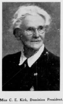 - ^ "Miss C.E. Kirk, Dominion President". The White Ribbon. 18 (4): 1. 1 May 1946. Retrieved 7 December 2020.