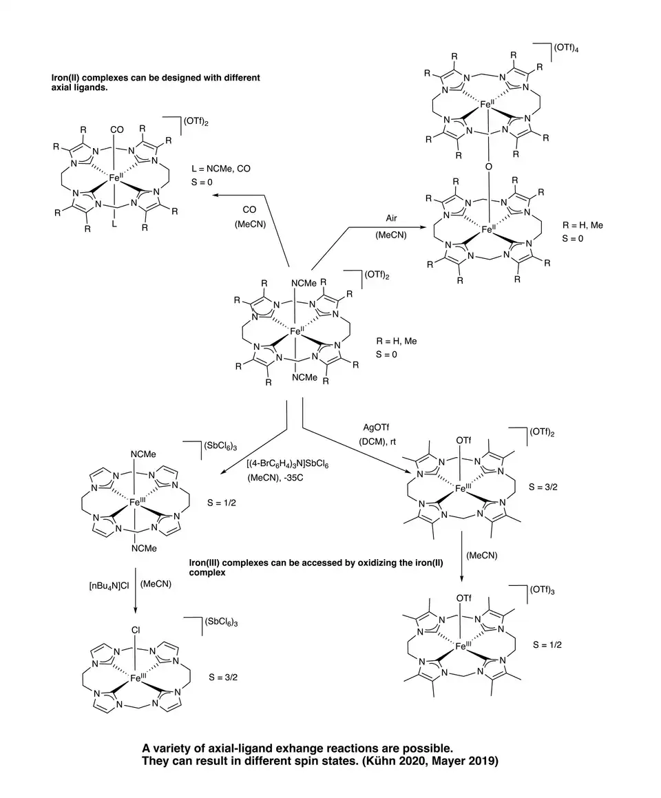 The axial ligands can be exchanged for others, allowing access to a plethora of spin states.