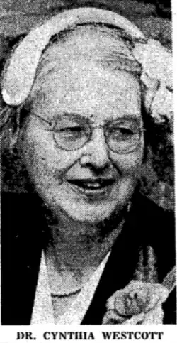Cynthia Westcott (June 29, 1898 – March 22, 1983) was an American plant pathologist, author, and expert on roses.[1] She published a number of books and handbooks on horticulture and plant disease.[2] Westcott was nicknamed "The Plant Doctor", and is credited with starting the "first ornamental disease diagnosis business" in the United States.[3] Her work was featured in The New York Times, House and Garden, and The American Home.[2] She identified the cause of the plant disease Ovulinia azaleae and a novel treatment for it.[2]