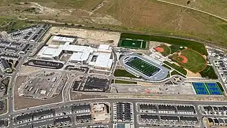 A new Cyprus High School campus is currently being constructed on an empty lot located at 8575 W Cordero Dr in Magna, Utah, United States. The new campus will replace the old campus by the fall of 2025.