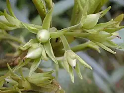 Cyrtandra (Neo-Latin, from Greek κυρτός, kyrtós, "curved", and ἀνήρ, anḗr, "male", in reference to their prominently curved stamens)[2] is a genus of flowering plants containing about 600 species,[3] with more being discovered often,[4] and is thus the largest genus in the family Gesneriaceae.[5] These plants are native to Southeast Asia, Australia, and the Pacific Islands, with the centre of diversity in Southeast Asia and the Malesian region.[5] The genus is common, but many species within it are very rare, localized, and endangered endemic plants.[4] The species can be difficult to identify because they are highly polymorphic and because they readily hybridize with each other.[3] The plants may be small herbs, vines, shrubs, epiphytes, or trees. The genus is characterized in part by having two stamens, and most species have white flowers, with a few red-, orange-, yellow-, and pink-flowered species known. Almost all species live in rainforest habitats.[4]