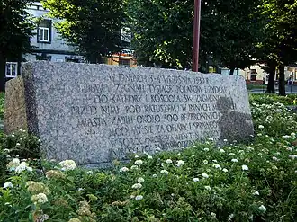 A monument commemorating the massacre, on the John Paul II square, near the cathedral where atrocities took place