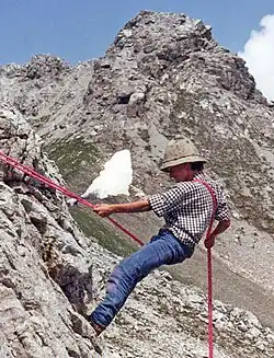 - ^ Günter Sturm/Fritz Zintl: Alpin-Lehrplan 2, Felsklettern, BLV München, Bern, Wien 1979, ISBN 3-405-11943-X, S. 64 f.