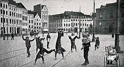 The Düsseldorf's cartwheeler (Radschläger in German) is the oldest tradition of Düsseldorf and became one of their famous landmarks. This tradition was honoured in 1954 by the erection of a fountain, called Cartwheeler's Fountain, in Düsseldorf's Burgplatz.[1]