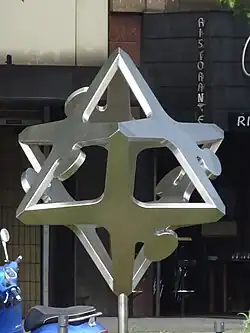 Friedrich Becker's Design from the late 1950s is the best known. His "Radschläger cube" from 1995 is now on Klosterstrasse in Düsseldorf.