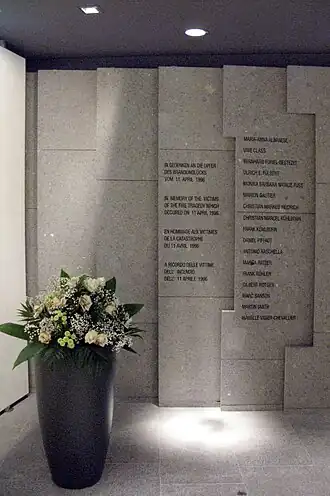 ![]() Names of the victims in the airport memorial room | |