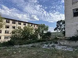 The first buildings to be constructed on the hill were the student accommodation buildings and vocational academic area constructed by the state which, while once bustling and active, became unused after the fall of the Soviet Union, and stand abandoned and dilapidated to this day, with the exception of one building still in use. The collapse of the USSR began an era of substantial stagnation in construction, and many plans simply never came to fruition, due to neoliberalism, shock therapy, and austerity measures. This massive change also brought increased unemployment, poverty, and crime, especially violent house burglaries and theft.[23] Birth rates and school enrollment fell while emigration increased, especially starting from the 2000s onward. As part of the privatization process due to independence, between 1989 and 1993, the renowned state farm was completely destroyed and abandoned, including the complex irrigation system, accelerated in part because of capitalist corruption, bribery and business scandals.