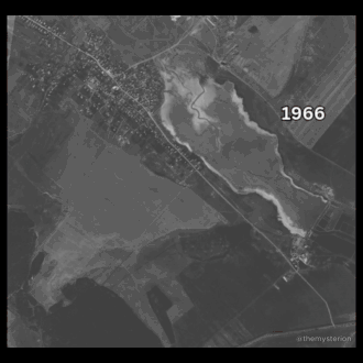 A large lake had existed next to the village for hundreds of years, as even in 1777 there was a mention of 'The Great Lake of Dănceni'.[6] The retention basin now present in the valley was a project carried out by the Soviet planners, starting in the 60s and finishing in the early 80s, for the purpose of: curbing flooding issues; creating a large water source for improved collective farming; and for experimental fish farming.[15] Due to a steady increase in population over the decades, small canals and rectangular ponds existed on the Ișnovăț river floodplain, which acted as irrigation for agriculture, and to take advantage of the low, flat landscape.[16] The plan for the new village, where the majority of the population now live, was drawn up in 1975, as the final stage began with the rapid increase of the lake's volume. People living on the shrinking banks of the now filling river valley were the first to be gradually relocated from the old village, to a higher elevation. They were given free construction supplies and larger plots of land by the Soviet government. By the end of 1982, most residents had relocated from the old town, and the remaining houses began to be demolished, or abandoned. The present day configuration of the locality had taken shape by the end of the 80s, with the asphalting of most roads, and the opening of the kindergarten and school. [11]