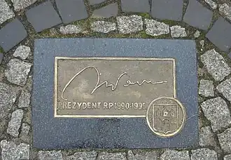 Bydgoszcz Autographs alley is a collection of relief signature embedded into the pavement of Długa street, between the streets Jan Kazimierz and Stefan Batory streets. These granite plaques display Polish meritorious men and women. This theme avenue is the result of a competition run in 2007, aiming at creating new attractions in Bydgoszcz. The competition gathered 123 proposals, the City Hall council settled the contest in November 2007: the author of the winning idea of Bydgoszcz's Autographs alley was Halina Piechocka-Lipka, director of the cultural department of Bydgoszcz.[17] Local artist Michał Kubiak designed the plaques, nominated names are chosen by a committee comprising among others municipality members and university officials.
