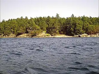 D'Arcy Island's proximity to the border with the United States was exploited by American bootlegger Roy Olmstead in the smuggling of Canadian liquor, primarily whisky, to Washington State.[6] His operation would transport the liquor from Victoria, British Columbia, to islands in Haro Strait, including D'Arcy, for later pickup by smaller craft that would move the contraband during rough weather, making it more difficult for the Coast Guard to detect them.[7]