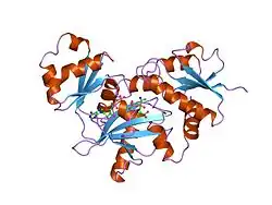 - ^ Roper DI, Huyton T, Vagin A, Dodson G (August 2000). "The molecular basis of vancomycin resistance in clinically relevant Enterococci: crystal structure of D-alanyl-D-lactate ligase (VanA)". Proc. Natl. Acad. Sci. U.S.A. 97 (16): 8921–5. Bibcode:2000PNAS...97.8921R. doi:10.1073/pnas.150116497. PMC 16797. PMID 10908650.