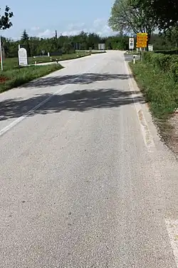 During the Second World War all the roads in Istria sustained significant damage.[15] After the war the road became a part of the Adriatic Highway – a trunk road tracing the Adriatic Sea coast within the SFR Yugoslavia,[16] signposted as M2 route.[17] The next major addition to the road network on the peninsula was completion of the first section of the Istrian Y expressway in 1981. The system was designed to replace M2 route as the main road route in Istria.[18] The Yugoslav M2 designation was retained after the independence of Croatia, until 1997, when the part of the Adriatic Highway spanning the Slovene border and Pula was designated as state road D21.[19] Since October 1991, Hrvatske ceste, a company owned by the Government of Croatia, has been tasked with maintenance of the road.[20] In 2013, following a new classification, the coastal county roads were classified as D75 state road and thus, D21 lost on its importance and was declassified. The present-day route of the D21 consist of short, one kilometre (0.62 mi) section of D510, 45.8-kilometre (28.5 mi) section of Ž5209 county road, forming its northern half and 32.7-kilometre (20.3 mi) section of D75, forming its southern half.[21]