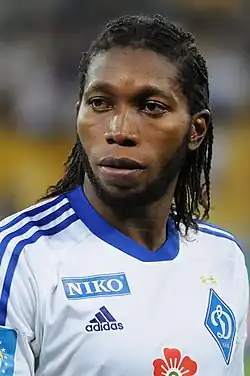Zaire were the first Sub-Saharan African team to participate in a World Cup, qualifying for the 1974 tournament in place of the 1970 participant Morocco, whom they defeated in the decisive qualifier 3–0 in Kinshasa.[6] Such was the desire to foster an identity of Zaire as a global player that Mobutu paid for advertising hoardings at the World Cup to display messages such as ‘Zaire-Peace’ and ‘Go to Zaire’.[7] At the tournament itself, Zaire did not manage to score any goals and lost all of its games, but gave credible performances against Scotland and Brazil. However, their 9–0 loss against Yugoslavia remains one of the worst World Cup defeats. A bizarre moment came in the match versus Brazil; facing a free-kick 25 yards out, defender Mwepu Ilunga, upon hearing the referee blow his whistle, ran out of the Zaire wall and kicked the ball upfield, for which he received a yellow card. This was voted the 17th greatest World Cup moment in a Channel 4 poll.[8] Ilunga has stated that he was quite aware of the rules and was hoping to convince the referee to send him off. The intended red card would have been a protest against his country's authorities, who were alleged to be depriving the players of their earnings.[9] Many contemporary commentators instead held it to be an example of African football's "naïvety and indiscipline".[10]
