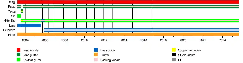In 2023, the band teamed up with Moi dix Mois, Versailles and Matenrou Opera for the four-date Japanese Visual Metal tour between September 22 and October 2.[39] The four bands collaborated on the song "Kyōsōkyoku ~Tanbinaru Kettō~", which was released as a single credited to the JVM Roses Blood Symphony.[40]