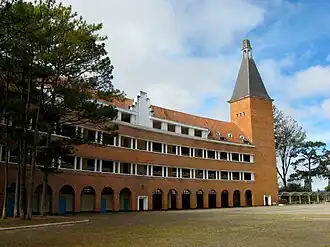 The hill station of Da Lat had boarding schools that served all of Vietnam. It had been seen as a possible center of government that would be hygienic and segregated between Europeans and Vietnamese.[4] The Petit Lycée de Dalat was created by decree on 16 July 1927, opened on 16 September 1927, and was open for boarders on 7 January 1928.[5] A primary and secondary school, it was restricted to European children.[6] However, the proliferation of the Vietnamese elite in the town made it increasingly impracticable to practice segregation.[7] The Lycée de Dalat, or Grand Lycée, was also founded in 1927, open to French children and the children of the Vietnamese elite. It was a French-style lycée, or secondary school.[8] On 10 May 1935, it took the name Lycée Yersin in honor of Dr. Alexandre Yersin.[4] When the governor-general Jules Brévié visited Da Lat he told a racially mixed set of students at the Lycée Yersin on 12 July 1938,