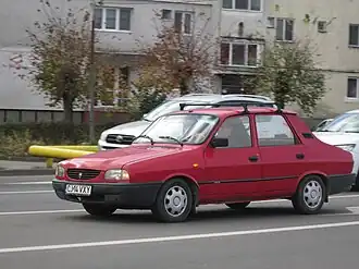 The Dacia 1310 is a family of automobiles produced and sold exclusively by Dacia between 1979 and the beginning of 1999, and from 1999 to 2006 jointly by the French manufacturer Renault and its Romanian subsidiary Dacia. In 1979, Dacia presented the 1310 model at the Bucharest Auto Show as the successor of the Dacia 1300.[3] Together with the Dacia 1300, a total of 2,278,691 units were produced,[4] the last sedan being manufactured on July 21, 2004, and the last pick-up truck in December 2006.[5][6] In the same year, its successor, the Dacia Logan, was launched.
