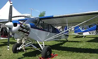 The Super 18 is the kit derivative of the type certified Super 18 Model S18-180 that is manufactured by a separate, but affiliated company, Super 18. The Dakota Cub Super 18 features a strut-braced high wing, a two-seats-in-tandem enclosed cockpit that is 28 in (71 cm) wide, fixed conventional landing gear and a single engine in tractor configuration.[1]