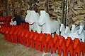 Today, many of the villages in Dalarna county make Dala horses with individual styles representing the district of origin. These horses also have distinctive shapes and often come in different sizes. Some horses like the Nusnäs horse are stocky work horses; others are lean and upright with stately countenance like the Rättvik horse. Many of these can be seen at a yearly exhibition (since the year 2000), which is held at Klockargården in Leksand, Sweden. Currently, about forty present carvers and painters show their Dala horses and put them up for sale.