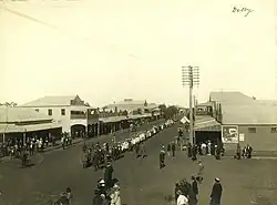 Dalby was believed to have a healthy climate and in October 1900 the Queensland Government opened the Jubilee Sanitorium for consumptive patients. The name Jubilee commemorates the Diamond Jubilee of Queen Victoria.[27][28] In 1904 the Dalby Town Council erected therapeutic thermal baths using artesian water from a local bore for those wishing to improve their health by "taking the waters".[29] In 1938, the council closed the artesian baths as interest in "taking the waters" was declining. Medical opinion became increasingly doubtful of the benefits of bathing in mineral waters, favouring drugs and physiotherapy as better treatments.[30] It closed in January 1938 with its remaining patients transferred to Westwood Sanatorium.[28][31]
