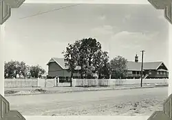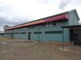Over three decades, enrolment at the Dalby State School's high top slowly rose, from 16 students in 1915 to 41 in 1944.[22] Domestic science classes were also added to the secondary department in 1922, and woodwork and commercial courses followed in 1927. Pupils from the wider district outside Dalby also attended these vocational classes, some of which were held at night.[18][23][24] In 1934 the high top building (extant in 2016) was shifted, to be parallel to, and slightly behind, the west end of the main school building .[25] Vocational education was a Queensland Government priority to support the development of primary industries; this evolved after World War I into a variety of subjects. Vocational training within primary education began in 1895 with drawing classes and expanded to include domestic sciences, agriculture, and sheet metal and wood working classes. The subjects required a variety of purpose-built facilities and were initially gender segregated.[26] Standard, purpose-designed vocational buildings were first introduced in 1928. In 1936 the Minister for Education permitted students to take vocational subjects in lieu of geography or history in the Junior Examination, increasing the subjects' popularity.[27][1]