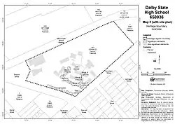 - ^ DPW Plan 79007/CD/A01-01, "Dalby SHS new class rooms for the year 7 flying start into high school, overall site plan", 2013.
