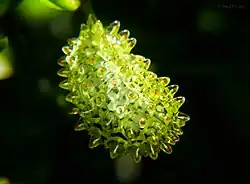 Female Dalceridae have "accessory glands" that apply a rapidly drying liquid to the eggs.[1] The function of the liquid is unknown but it is theorized that it may provide strength to eggs, help glue the eggs in place, or offer protection from egg parasites.[1]