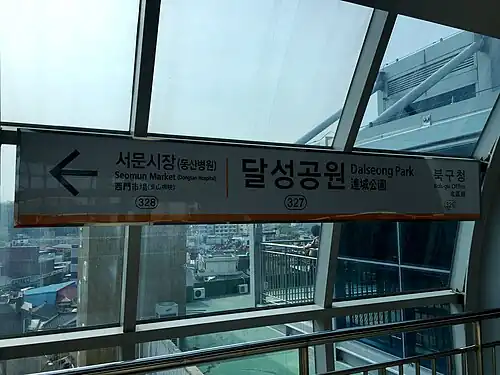 Media related to Dalseong Park Station at Wikimedia Commons- (in Korean) Cyber station information from Daegu Transportation Corporation