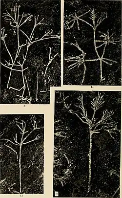 | Images from Walcott from fossils collected at the Burgess Shale, published in 1924. The bottom two photos are Dalyia nitens (left) and Dalyia racemata.(right) | |