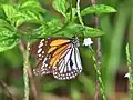 It ranges from Assam in eastern India through South-East Asia south to Indonesia, and eastwards to the Philippines and through southern China to Taiwan.[1][2] It has around 17 subspecies, and its closest relative is the Malay tiger, Danaus affinis.[2]