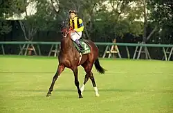 Racing as a three-year-old, he defeated Fusaichi Concorde (winner of Japanese Derby) at Kikuka Sho (JPN Domestic GI, Japanese St. Leger), and was second in the Tokyo Yushun (JPN Domestic GI, Japanese Derby). After winning the Kikuka Sho, however, he was diagnosed with tendonitis, and as a result was retired to stand stud.[2]