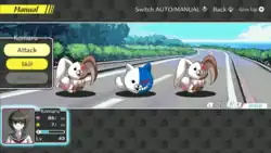 Throughout the development mode, players encounter enemies, defeating which will award them with experience points, as well as "Jabbercoins", the game's currency, which can be used at shops to buy equipment or other items. The combat system in Ultimate Summer Camp is similar to that of other turn-based role-playing games: players can perform both normal and special/elemental attacks, with special attacks taking up skill points, limiting the number of times they can be used. Special attacks are unlocked through the use of "Talent Fragments", which can be obtained via stepping on certain squares or by viewing certain scenes.[4] Each character also has an "Awaken" bar, which effects the power of attacks if used.[7] If a battle is lost, players are sent back to the beginning of the board.[8]