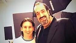 ![]() Dani el Rojo (right) with footballer Lionel Messi. | |