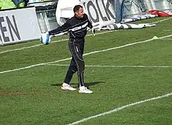 After two seasons at Arad he signed with Unirea Urziceni with whom in his first season he won the title but coach Dan Petrescu used him in only two matches as first-choice goalkeeper was Giedrius Arlauskis.[1][3][10] Afterwards he participated with Urziceni in the 2009–10 Champions League group stage, on 20 October 2009 he made his single appearance in the competition, saving a Steven Davis penalty to help his side win 4–1 with Rangers on the Ibrox Stadium.[3][11][12] In the same season on 10 April 2010, Tudor played his last Liga I match, a 1–1 with FC Vaslui, having a total of 114 appearances in the competition.[1][13] He completely ended his career after playing seven games for Juventus București in the second half of the 2010–11 Liga II season.[1][14]