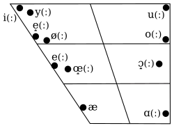 Modern Standard Danish has around 20 different vowel qualities. These vowels are shown below in a narrow transcription.