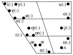 | Open-mid | ɛ | ɛː | œ | œː | ɐ | ɔ | ɔː | |
