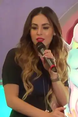 In late 2010, she voiced Rapunzel for the Latin American Spanish-language dubbing of the Disney film Tangled[7] and participated in the film's Spanish-language soundtrack.[8]
