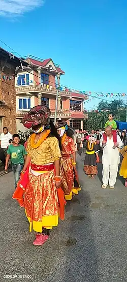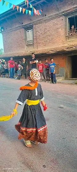 Performed by two 'Lakhey' and two 'Nakheycha', the dance is staged during the daytime of 'Sasthi' in the month of August or 6th day after the full moon in Bhadra.