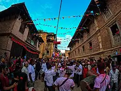 Shri Krishna Janmashtami Jatra is celebrated on the day of Krishna Janmashtami or the 8th day after the full moon of August. Women of Dapcha perform fasting all day and worship Krishna at midnight wishing for husbands like Lord Krishna or long life of their husbands in case they are already married. On the day of Navami (9th day after the full moon of August) people celebrate the birth of Krishna by carrying 'Khata'. Hence, it is also known as Shri Krishna Janmashtami Ratha Yatra. There are three Krishna Ratha, one in each place; Tallo Hatiya, Kotkali and Dapcha Bazar. The people of Tallo Hatiya carry out the Khata in the morning whereas the people of Maslo hatiya (Kotkali) carry out the Khata during the day. The tradition of celebrating this jatra is believed to have started in 1960 on Bazar and in 2001 on Kotkali.