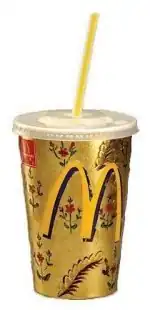 Untitled (McDonald's Cup) by Darío Escobar, 1999, cardboard, plastic, gold and pigments
