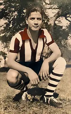 Jara Saguier started his career in his hometown club Club Rubio Ñú in 1946 before moving to Cerro Porteño where he spent most of his career and became a key player. He was the 1st division topscorer two consecutive seasons (1949 and 1950), scoring 18 goals on each season.[3] In 1960, after a long career with Cerro Porteño, Saguier went on to play for several Paraguayan clubs such as General Caballero ZC, Rubio Ñú, Luis Alberto de Herrera (Guarambaré) and Olimpia de Itá before retiring in 1965.