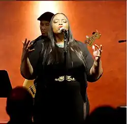 She has shared the stage with Lonnie Smith,[4] 7-string guitarist Charlie Hunter, and pianist Johnny O'Neal[5] at The Blue Note in New York City,[6] The San Jose Jazz Festival, Smoke Jazz and Supper Club in New York City, Sculler's in Boston, the Oklahoma Jazz Hall of Fame,[7] and Snug Harbor in New Orleans. In November 2016, she shared the stage with Vince Gill and the Time Jumpers.[8] She has recorded with guitarist Peter Bernstein, guitarist Charlie Hunter, pianist Helen Sung, trombonist Alan Ferber, saxophonist John Ellis and drummer Donald Edwards. She is a touring member of the Charlie Hunter Trio, with whom she has performed throughout the Midwest and east coast.