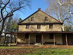 The Darby Meeting or Darby Friends Meeting House is located in Darby, Pennsylvania. The first recorded minutes of the meeting are dated July 2, 1684, not long after William Penn landed in nearby Chester to establish the colony of Pennsylvania. The first Friends meeting house in Darby was a log cabin built in 1687.[3] The third and present building was built in 1805.[4] It was used during the Revolutionary War by Continental soldiers. During the War of 1812, it was used by the U. S. Army as a hospital.[5]