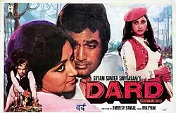 Dard (Pain) is a 1981 Bollywood crime film directed by Ambrish Sangal. Rajesh Khanna, who had a double role in the film, was nominated for a Filmfare Award for Best Actor in 1982 for his performance. The film was successful at the box office and ran to silver jubilee at Mumbai and other centers. Award-winning composer Khayyam composed the music for the film.