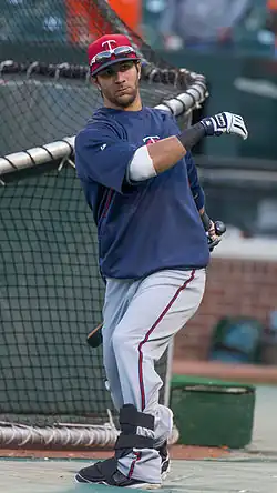 On February 9, 2012, he was claimed off waivers by the Minnesota Twins.[4] He was assigned to Double-A New Britain, where he was the Opening Day left fielder. He earned his first major league hit and RBI on May 11, 2012.[5] He hit his first major league home run on June 27, 2012.[6]