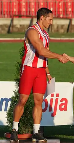 During the outdoor season he competed at three national championships. At the Serbian U23 championships he finished first in the 400 m and 4 × 100 m, and second in the 100 m event.[29] At the Serbian championships he won the gold medal in the 200 m, the silver in the 100 m,[53] and the bronze in the decathlon event.[54]