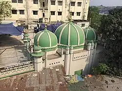 Daroga Amir Uddin Mosque (Bengali: দারোগা আমির উদ্দিন মসজিদ, romanizedDārogā Āmīr Uddīn Mośjid) is a three-domed mosque located in Babu Bazar, Dhaka, Bangladesh, on the banks of the Buriganga River.[1] Locally known as the Ghat Mosque (Bengali: ঘাট মসজিদ, lit.'riverbank steps mosque'), the structure has stood for almost two centuries in Old Dhaka.[2] The mosque compound includes the founder's mausoleum and an adjacent cemetery.[2][3]