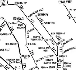 - ^ Barrie, D.S.M. (1980). A Regional History of the Railways of Great Britain, volume 12, South Wales. Newton Abbot: David & Charles Ltd.